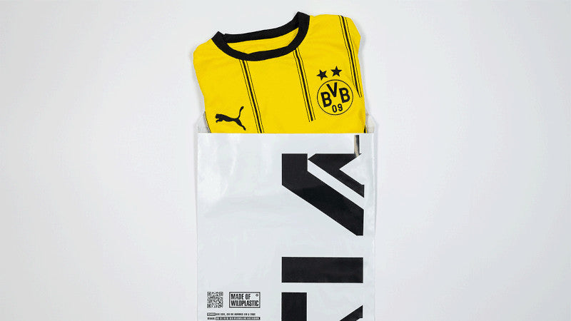 Borussia Dortmund ist der erste Fußballverein, der auf eine recycelte Versandverpackung aus wildem Plastik setzt – individuell im BVB-Design. Produziert in der EU, nachhaltig und zirkulär, steht diese Zusammenarbeit für Innovation und Verantwortung in der Sportbranche.