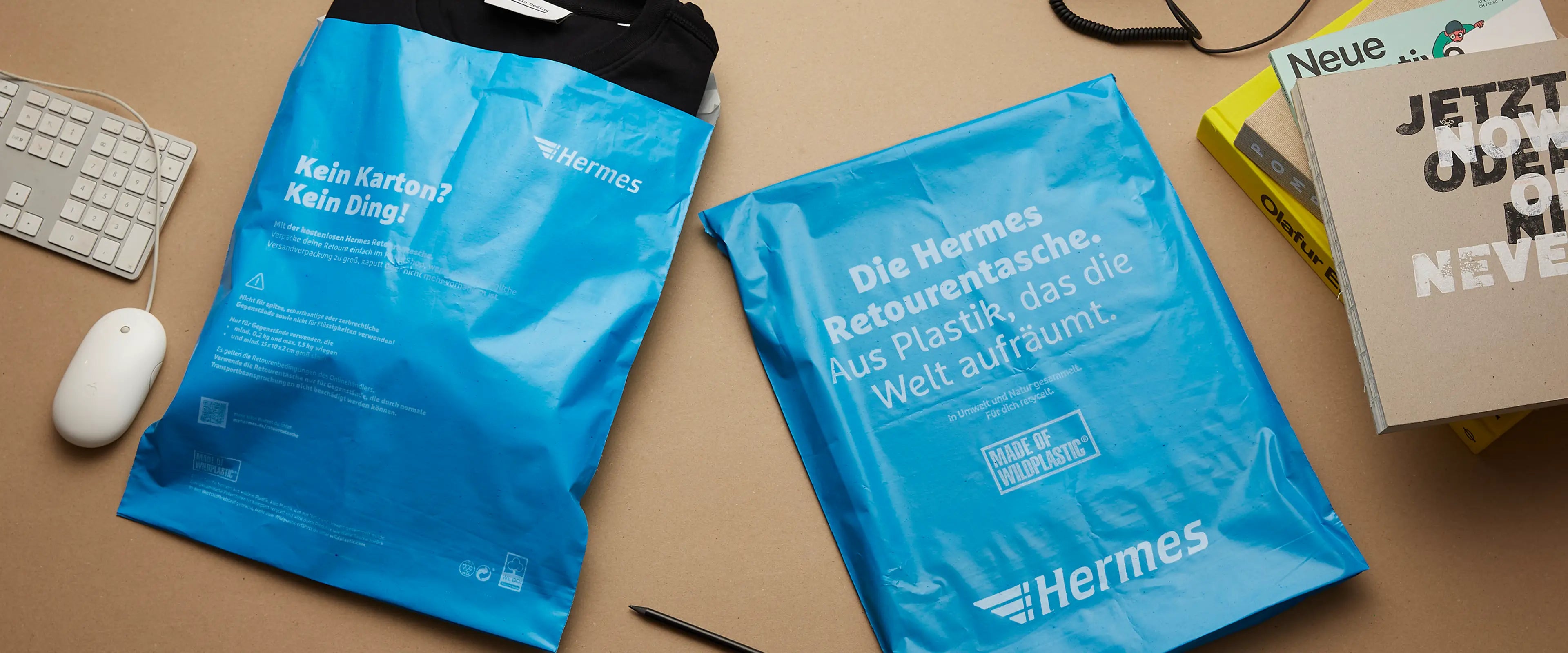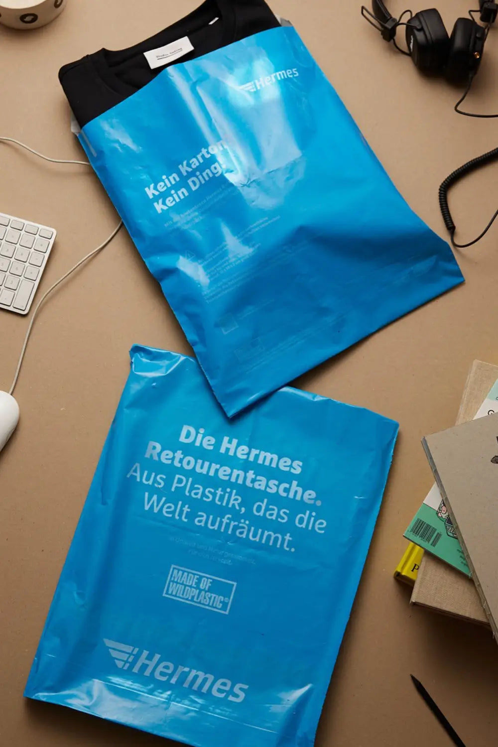 Gemeinsam gegen Plastikmüll ist das Motto der Zusammenarbeit von WILDPLASTIC und Hermes Germany. Seit September 2023 gibt es die Hermes Retourentasche made of WILDPLASTIC® kostenlos in allen Hermes PaketShops.