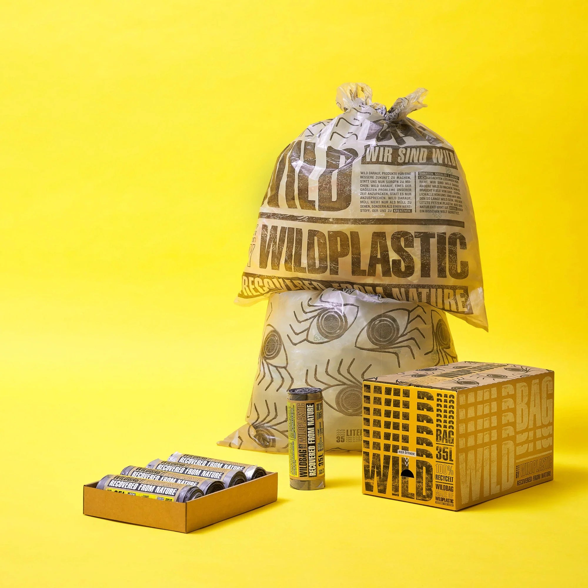 Dabei sind unsere 120 Liter WILDBAGS natürlich genau dafür gemacht. Durch ihre Reißfestigkeit halten sie Festivalbedingungen bestens stand und ihr Design macht Müll wegwerfen zum Statement, denn unsere WILDBAGS räumen doppelt auf.